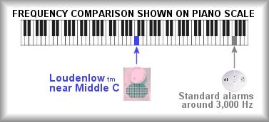 Typical smoke alarms are too high pitched to be effective for waking many populations. They are around 3,000Hz. Our smoke detectors generate 520 Hz, 250 Hz, and 135 Hz respectively. "Independent studies evaluated the performance of six different signals for waking up hard of hearing people from deep sleep and found the 520 Hz square wave to be the most effective of all the signals." See article.